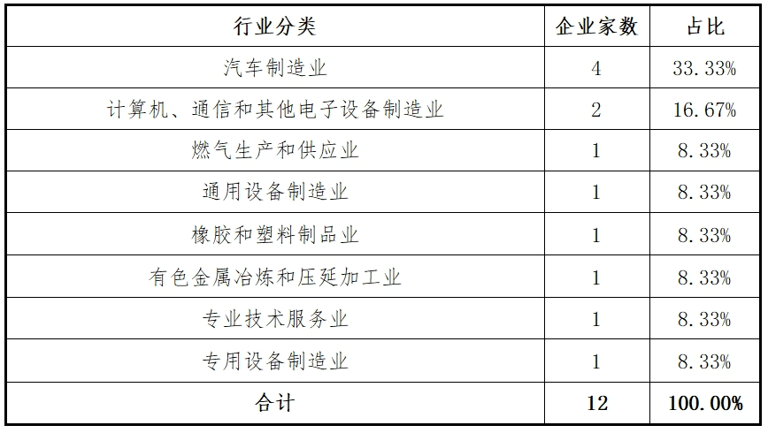 沪深主板已过会或注册(当年未上市)的12家企业共涉及8个细分行业。主要行业分别为:汽车制造业(4家)、计算机、通信和其他电子设备制造业(2家),合计占全部已过会或注册(当年未上市)企业的50.00%。行业分布情况如下表: