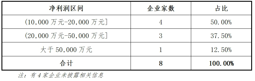 这8家企业2023年净利润均超过10000万元,净利润最高的天有为达到84257.04万元。8家企业净利润的分布如下表: