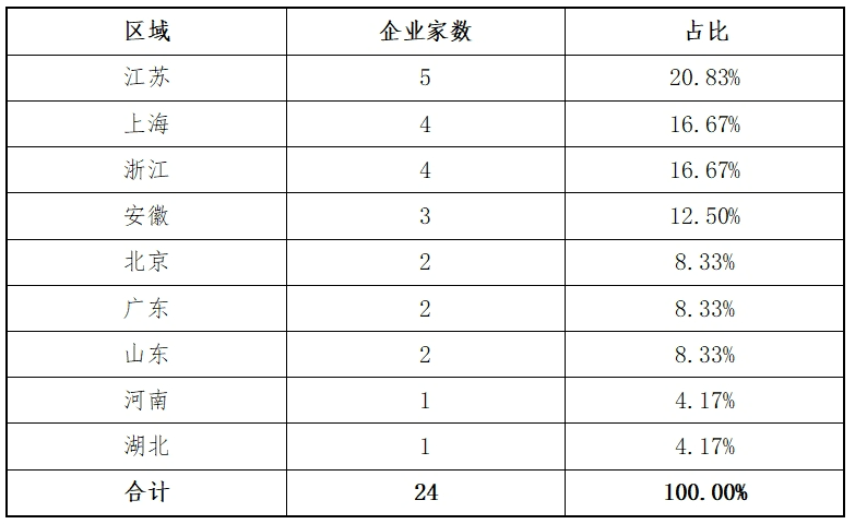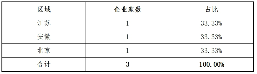 2024年主板受理项目涉及3个地区,分别是江苏(1家)、安徽(1家)、北京(1家)。具体如下表: